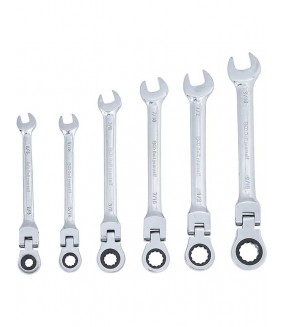 Jeu de clés mixtes à cliquet (6 pièces) avec têtes flexibles de la marque allemande BGS Do it yourself. Tailles : 1/4" - 9/16".